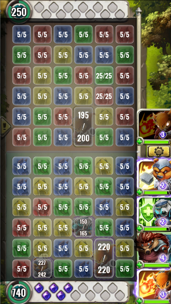 Sobald du den Scan-Button drückst, öffnet sich ein Overlay, dass dir die Lebenspunkte jedes Helden und jeder Einheit wie auch alle Hindernisse auf dem Board anzeigt.